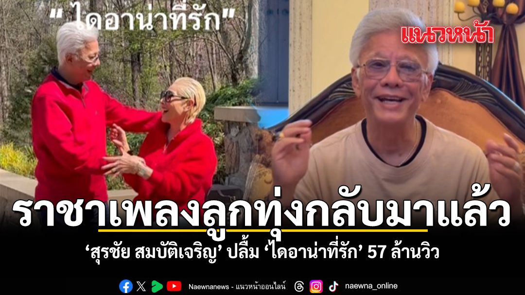 วันนี้ 7 เมษายน 2569 กลายเป็นกระแสไวรัลร้อนแรงที่หยุดไม่อยู่จริง ๆ สำหรับเจ้าพ่อเพลงลูกทุ่งรุ่นใหญ่ สุรชัย สมบัติเจริญ ที่ล่าสุดออกมาโพสต์คลิปวิดีโอผ่านเพจเฟซบุ๊ก สมบัติเจริญ สุรชัยไดอาน่า เพื่อกล่าวขอบคุณแฟนเพลงทั้งชาวไทยและต่างชาติ หลังบทเพลง ไดอาน่าที่รัก สร้างปรากฏการณ์ยอดวิวพุ่งสูงถึง 57 ล้านวิวในเวลาอันรวดเร็ว