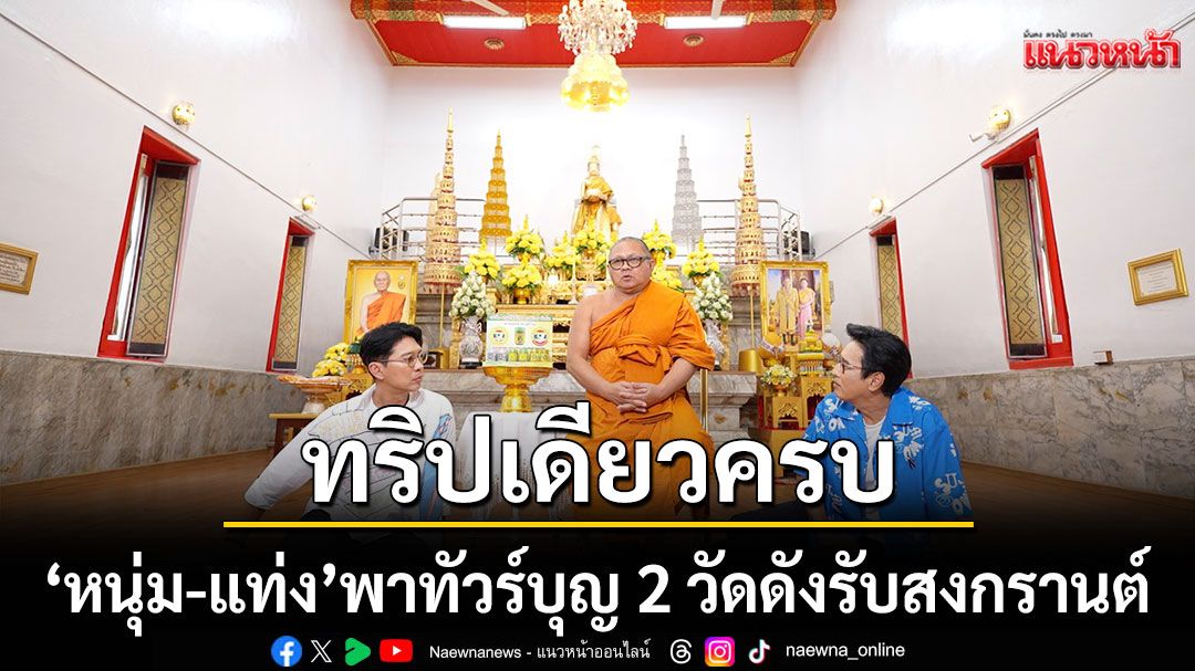 สายบุญสายกินห้ามพลาด “หนุ่ม-แท่ง” ลุย จ.สมุทรสงคราม ทัวร์ 2 วัดดัง ขอพรหลวงพ่อบ้านแหลม“วัดเพชรสมุทรวรวิหาร” พร้อมตะลุยแลนด์มาร์กใหม่ ที่ “วัดใหญ่” ปิดท้ายด้วยอาหารทะเลสดรสเด็ด เสาร์ 11 เมษายนนี้