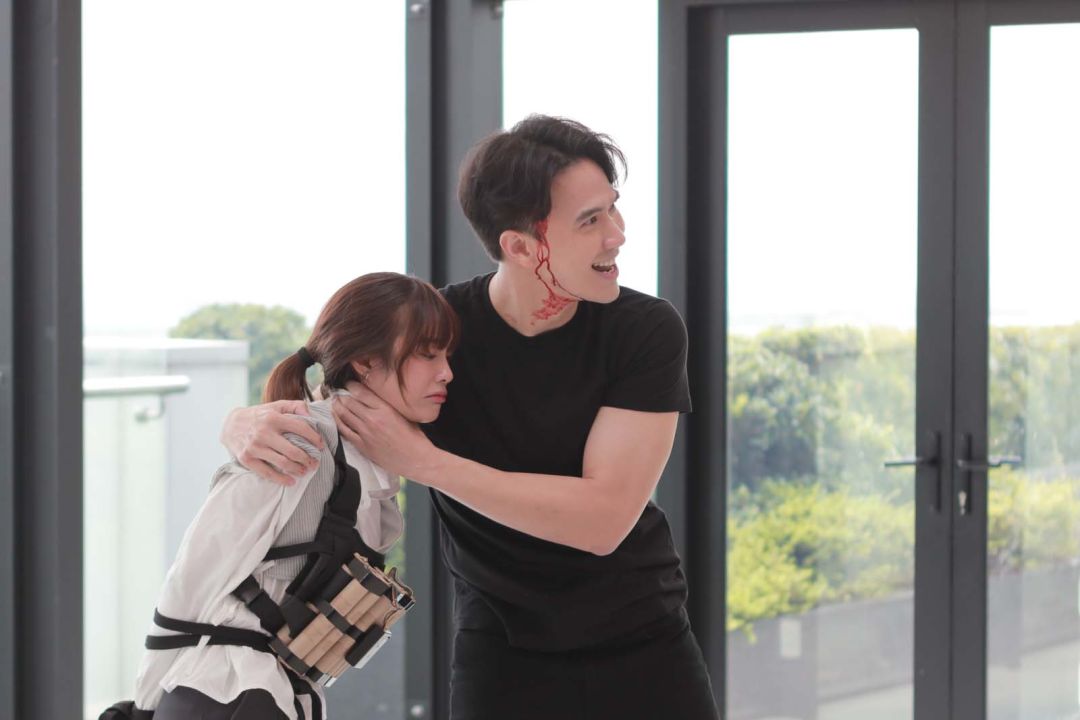 เบื้องหลังฉากบู๊และซีนอารมณ์สุดตึงเครียดนี้บอกเลยว่าไม่ธรรมดา เพราะทุกคนต่างซักซ้อมความเป๊ะเพื่อความปลอดภัย ไม่ว่าจะเป็นการบล็อกกิ้งและนัดแนะซ้อมคิวกันอย่างละเอียด เพื่อให้ภาพออกมาตื่นเต้น สมจริง และปลอดภัย 100% พอเริ่มถ่ายทำจริงทุกคนสวมวิญญาณตัวละครกันแบบสุดพลัง อินเนอร์มาเต็มแบบไม่มีใครยอมใคร ต่างคนต่างปล่อยฝีมือฟาดฟันกันแบบไม่มีกั๊ก เล่นจริง เจ็บจริง แอ็กชันเป๊ะตามที่ซ้อมไว้ไม่มีหลุด แต่พอสิ้นเสียง "คัท" บรรยากาศก็เปลี่ยนจากหน้ามือเป็นหลังมือ ทุกคนต่างหลุดคาแรกเตอร์มาปล่อยมุก แซวกันยับ สร้างความเฮฮาแก้เครียดกันอย่างสนุกสนาน เรียกได้ว่าสวิตช์อารมณ์กันแทบไม่ทันเลยทีเดียว