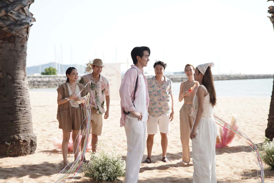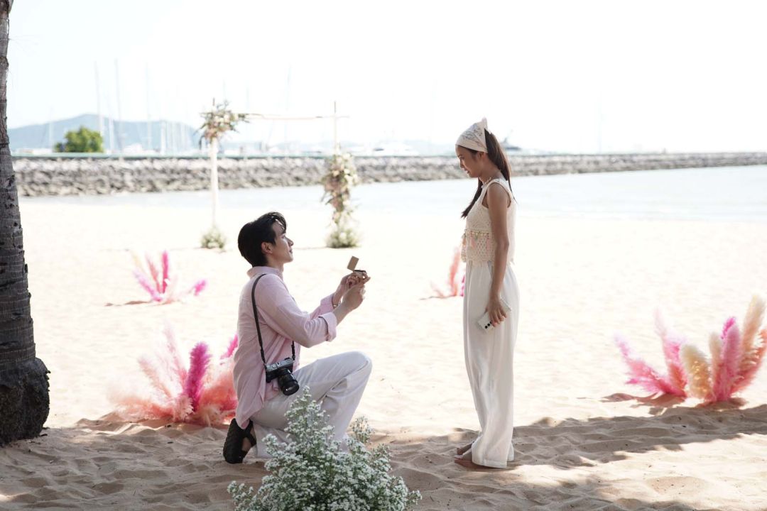 โดยฉากนี้เป็นตอนที่ ตรัย (กองทัพ พีค) เคลียร์ปัญหาเรื่องบริษัทจนลงตัว ก็ไม่รอช้าจัดทริปยกก๊วนพาทุกคนไปพักผ่อนรับลมทะเล แต่ไฮไลต์เด็ดอยู่ที่การแอบทำเซอร์ไพรส์ มอบของขวัญชิ้นใหญ่ที่สุดในชีวิตให้กับ ผักบุ้ง (เก๋ไก๋ ณัฐธิชา) ด้วยการคุกเข่าขอแต่งงานท่ามกลางพยานรักที่เป็นแก๊งเพื่อนสนิทแบบครบทีม