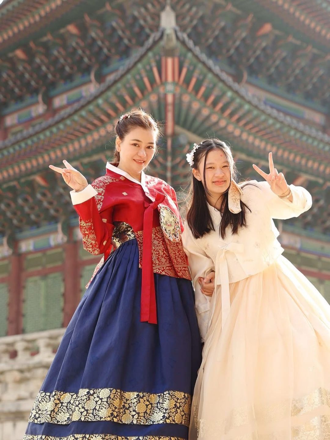 งานนี้ทั้งคุณแม่โอ๋และน้องแสนดีสวมชุด "ฮันบก" ชุดประจำชาติเกาหลีที่ดูสง่างาม โดย คุณแม่โอ๋ มาในชุดโทนสีแดงเข้มและน้ำเงิน ดูภูมิฐานและอ่อนเยาว์ ในขณะที่ น้องแสนดี เลือกสวมชุดโทนสีครีมอ่อน สดใสสมวัย ทั้งคู่โพสต์ท่าถ่ายรูปด้วยสีหน้ายิ้มแย้ม ท่ามกลางบรรยากาศสวนและสถาปัตยกรรมแบบเกาหลีโบราณที่ให้ความรู้สึกเหมือนหลุดออกมาจากซีรีส์หลังจากที่โพสต์ดังกล่าวถูกเผยแพร่ออกไป แฟนๆ ต่างเข้ามาคอมเมนต์ชื่นชมในความน่ารักของคู่แม่ลูก โดยหลายคนตั้งข้อสังเกตว่าน้องแสนดียิ่งโตยิ่งสวย และเริ่มมีโครงหน้าถอดแบบคุณแม่มาเป๊ะๆ จนกลายเป็นพี่สาวน้องสาวกันไปแล้ว พร้อมติดแฮชแท็ก #แม่ลูก #เกาหลีเกาใจ ที่คุณแม่โอ๋ลงไว้ด้วยความภูมิใจ