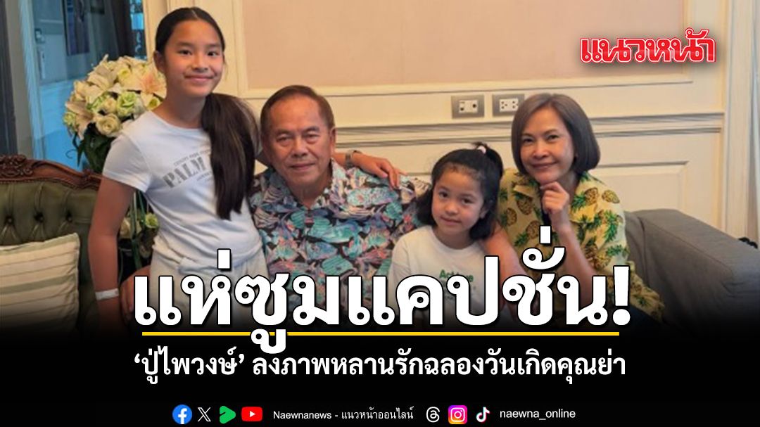 โดยในภาพคุณปู่ไพวงษ์มาในชุดเสื้อฮาวายสีสดใส นั่งอยู่บนโซฟากับคุณย่า โดยมีหลานสาวทั้งสองคนขนาบข้างอย่างใกล้ชิด งานนี้ทำเอาแฟนคลับถึงกับต้องเข้ามาคอมเมนต์ทักเป็นเสียงเดียวกันถึงความหน้าคล้ายที่ส่งต่อกันมาทางพันธุกรรมแบบเป๊ะ ๆ