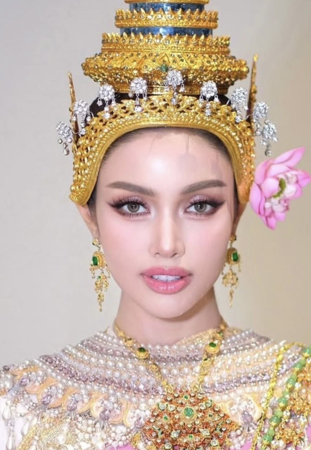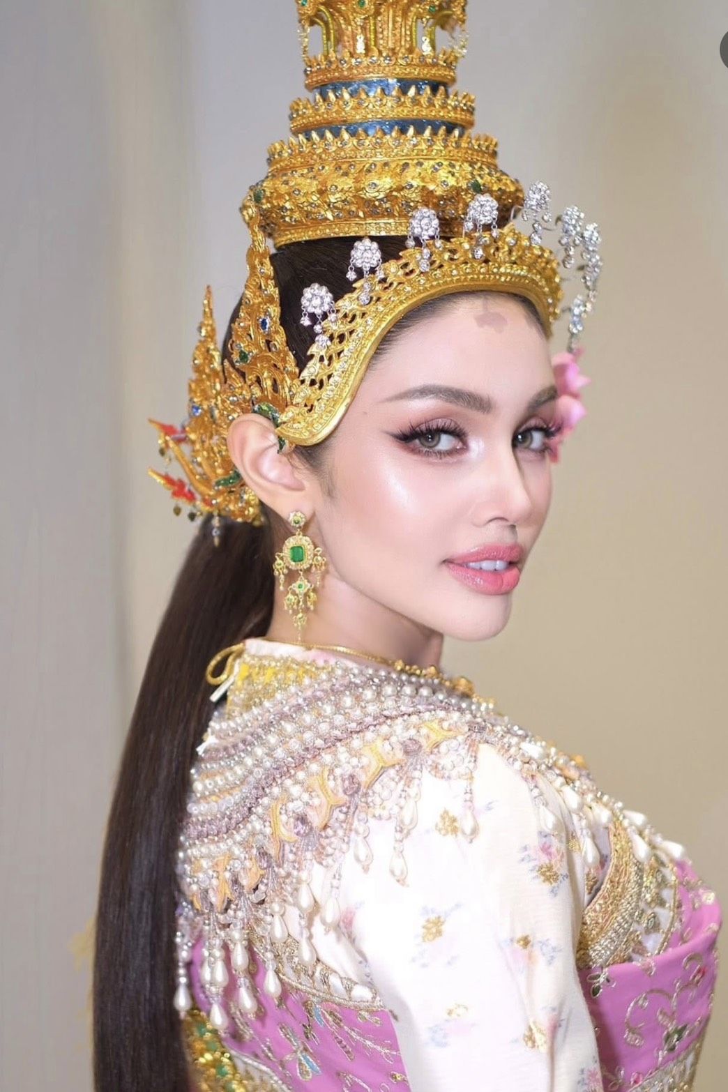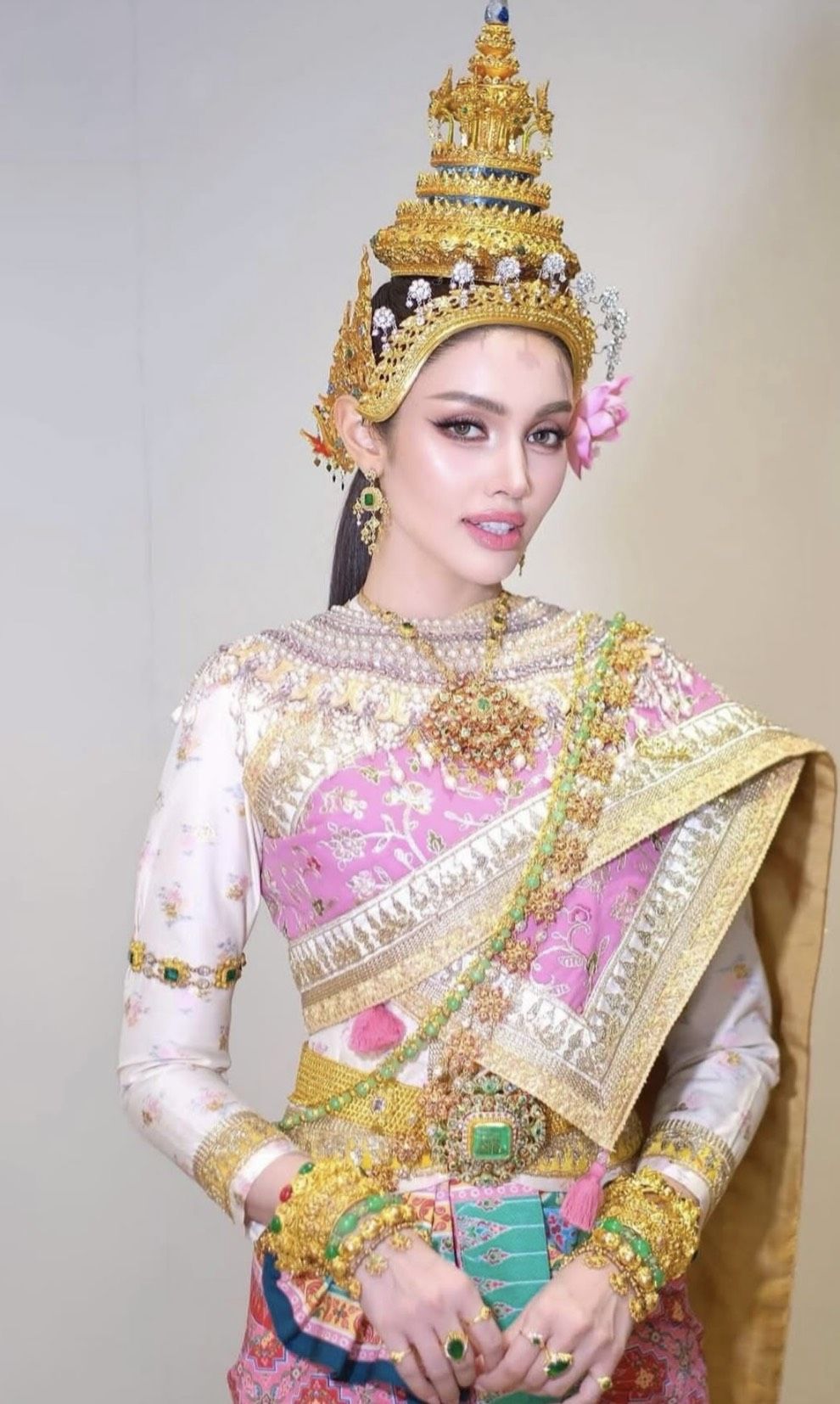 ในลุคนี้วีนามาในชุดไทยที่ผสมผสานความอ่อนหวานและความหรูหราได้อย่างลงตัวสไบและผ้าซิ่น: โดดเด่นด้วยโทนสีชมพูบานเย็นตัดกับผ้าถุงลายไทยสีเขียวมรกตและแดง สลักเสลาลวดลายพรรณพฤกษาอย่างละเอียดลออเต็มด้วยงานประณีตศิลป์ ทั้ง ศิราภรณ์ (ชฎา) ทรงสูงสีทองอร่ามประดับอัญมณี สวมทับบนมวยผมที่ประดับด้วยดอกบัวสีชมพูสด เพิ่มความอ่อนโยนให้กับใบหน้าเสริมความสง่าด้วยเครื่องทองครบชุด ทั้งปั้นเหน่ง (หัวเข็มขัด) ขนาดใหญ่ประดับหินสีเขียว, สร้อยสังวาลย์, และกำไลข้อมือทองคำสลักลายออร่าที่มากกว่าความสวยไม่ใช่แค่ชุดที่ส่งเสริม แต่ด้วยอินเนอร์และการโพสท่าที่ดูนิ่ง สงบ แต่ทรงพลังของวีนา ทำให้ลุคนี้ดูขลังและเปี่ยมไปด้วยเสน่ห์ของหญิงไทยสมัยใหม่ที่ยังคงรักษารากเหง้าทางวัฒนธรรมได้อย่างน่าชื่นชมงานนี้ทำเอาเหล่าแฟนคลับและแฟนนางงามต่างเข้ามาคอมเมนต์ชื่นชมในความ "สวยสร้างเรื่อง" และยกให้เป็นอีกหนึ่งลุคชุดไทยที่ดีที่สุดของเธอในปีนี้เลยทีเดียว