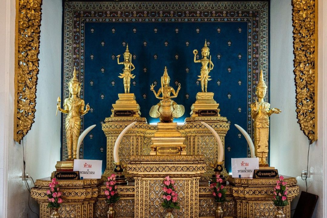 พระทรงเมือง รูปเทพารักษ์หล่อด้วยสำริดปิดทอง ประทับยืนบนฐานปัทม์ พระหัตถ์ซ้ายทรงพระขรรค์ พระหัตถ์ ขวายกชูขึ้นทรงสังข์ “พระทรงเมือง” เป็นเทพารักษ์มีหน้าที่ปกป้องดูแลทุกข์สุขของประชาชนทั้งแผ่นดิน และดูแลความผาสุกของประเทศ