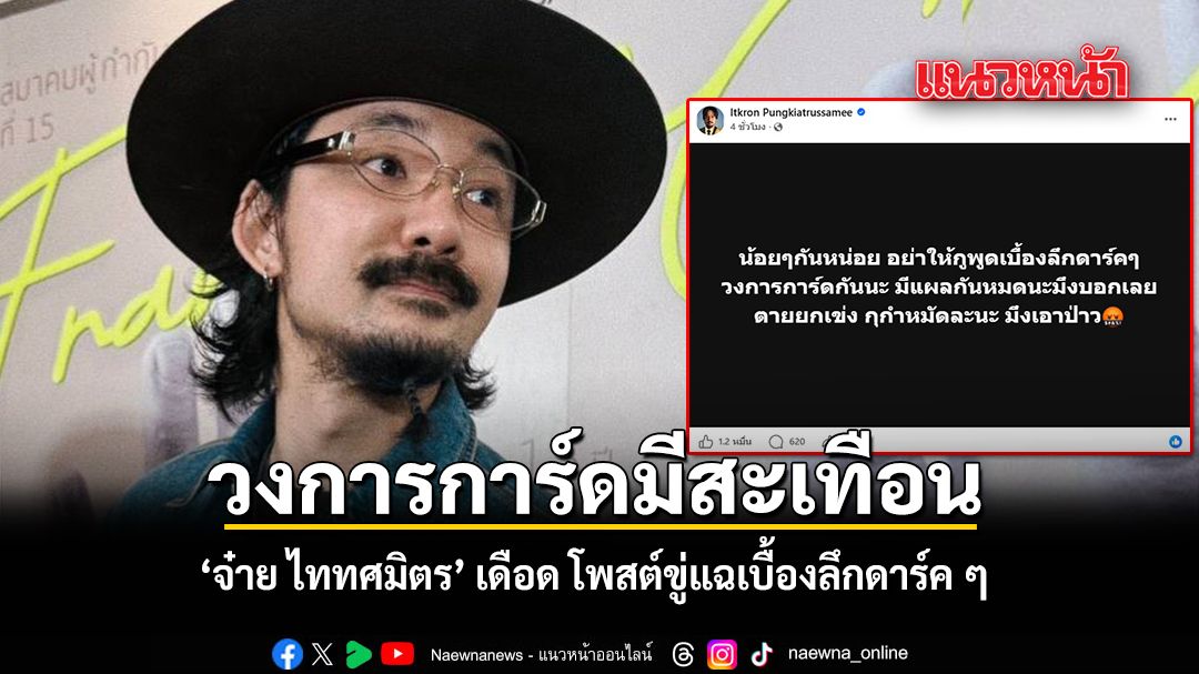 วันนี้ 17 เมษายน 2569 จ๋าย ไททศมิตร หรือ จ๋าย อิชณน์กร พึ่งเกียรติรัศมี นักร้องนำวง ไททศมิตร ออกมาโพสต์ฟาดเดือดถึง มุมมืด ในวงการการ์ดสะสม หลังจากที่เจ้าตัวได้ก้าวเท้าเข้าสู่วงการนี้อย่างเต็มตัว จนกลายเป็นกระแสเผ็ดร้อนบนโลกโซเชียล โดยมีข้อความทั้งหมดระบุว่า "น้อยๆกันหน่อย อย่าให้กูพูดเบื้องลึกดาร์คๆวงการการ์ดกันนะ มีแผลกันหมดนะมึงบอกเลยตายยกเข่ง กุกำหมัดละนะ มึงเอาป่าว [????]"
