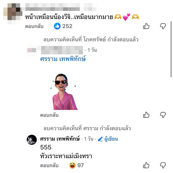งานนี้ หนุ่ม ศรราม เทพพิทักษ์ ไม่ปล่อยผ่าน เข้ามาตอบคอมเมนต์แบบชัดเจนว่า “หลานสาวกูเอง ไม่ต้องสงสัย”
