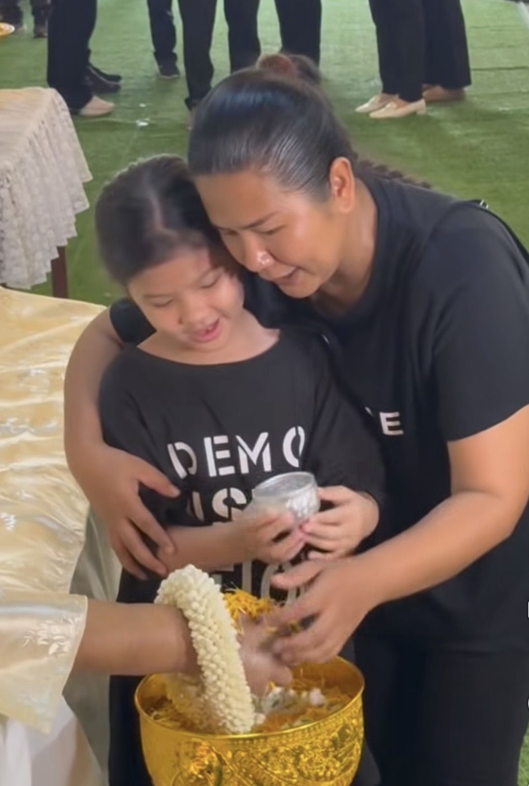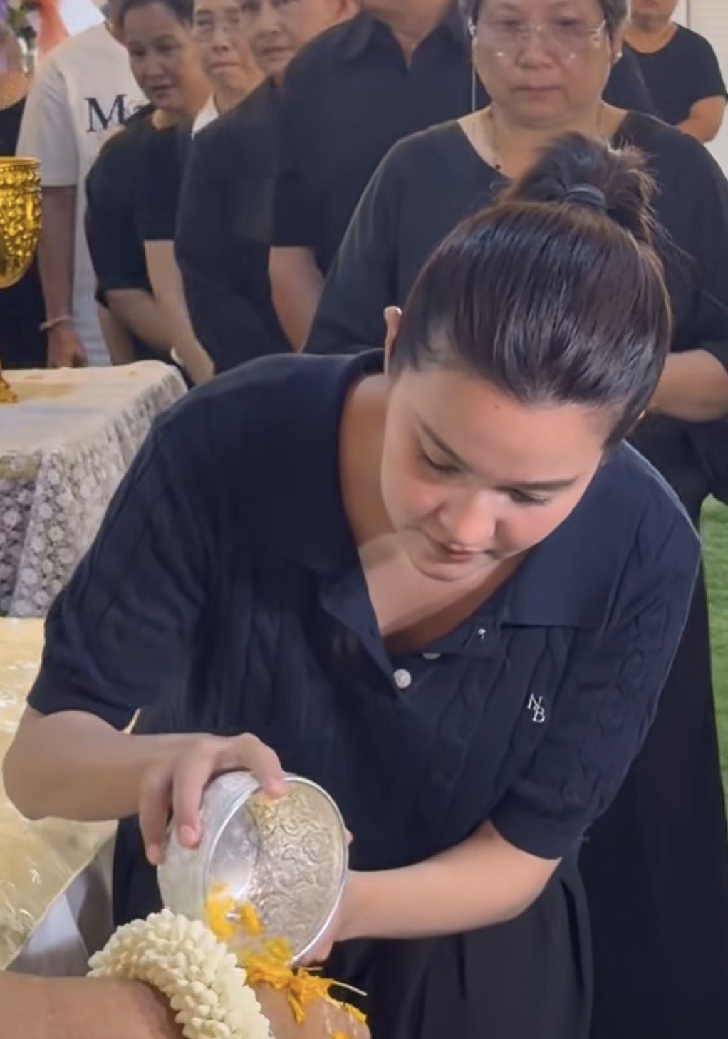 ทางด้านครอบครัว คุณกวาง พจนีย์ ภรรยา และ น้องเอวา ลูกสาว คอยให้การต้อนรับแขกที่มาร่วมงานด้วยความเข้มแข็ง ท่ามกลางกำลังใจจากมิตรสหายที่ส่งมาให้ครอบครัวศรีภิญโญอย่างไม่ขาดสาย