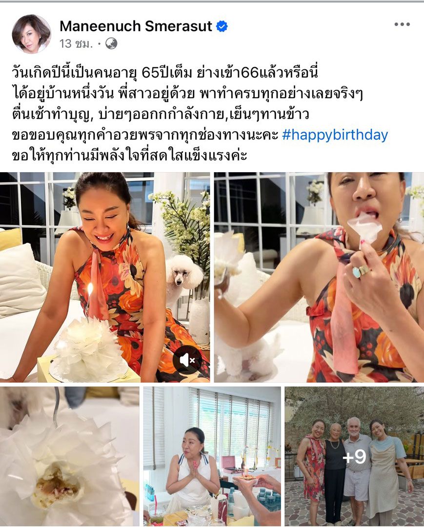 กลายเป็นโพสต์ที่สร้างรอยยิ้มให้กับแฟนคลับอย่างมาก เมื่อนักร้องและคอมเมนเตเตอร์รุ่นใหญ่ระดับตำนานอย่าง "ครูอ้วน มณีนุช เสมรสุต" ได้ออกมาโพสต์ภาพบรรยากาศวันเกิดสุดอบอุ่นผ่านทาง Facebook ส่วนตัว