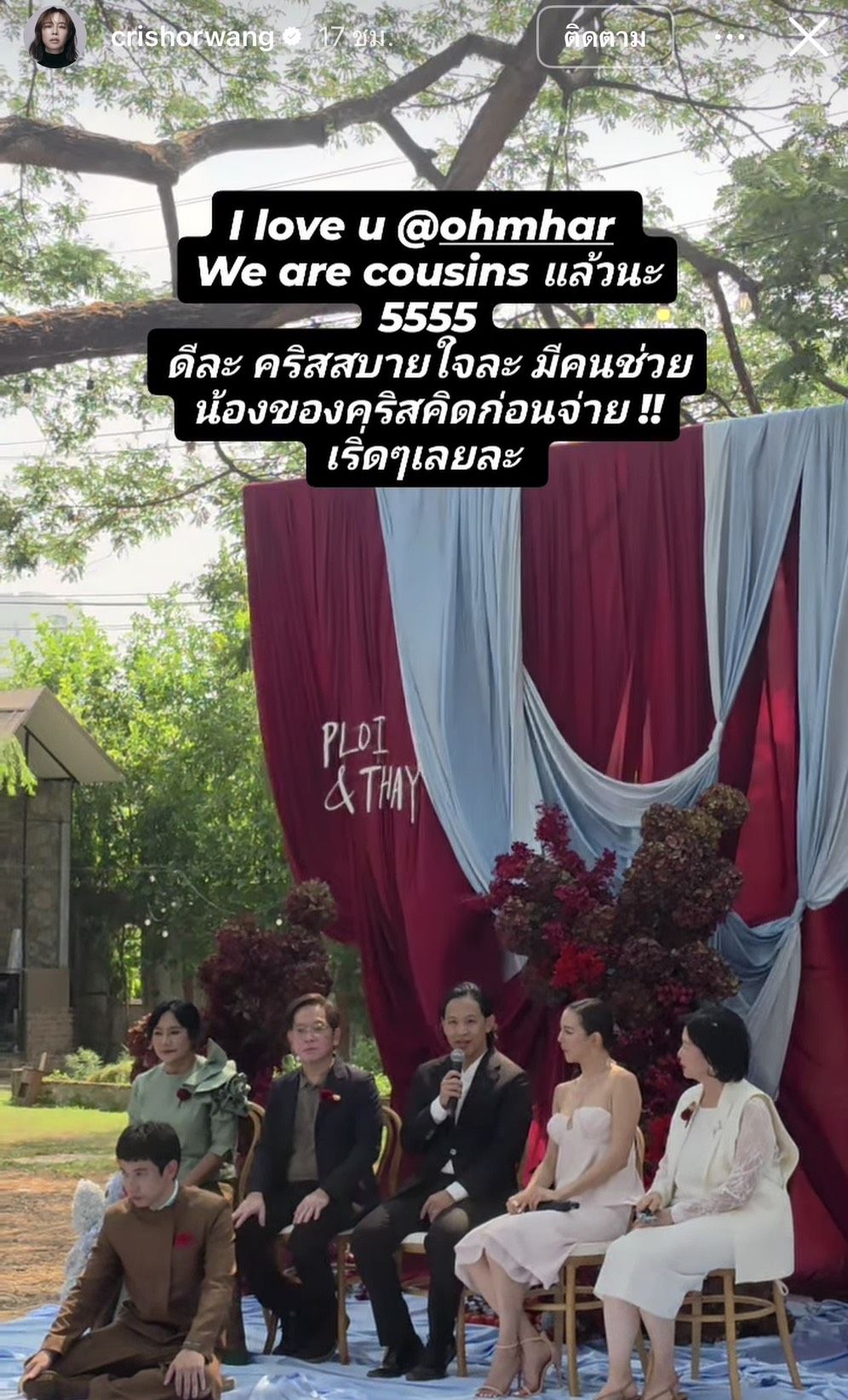 ซึ่งทางด้าน ‘คริส หอวัง’ ก็ได้ออกมาสยบดราม่าเสียหน้า โดยเจ้าตัวไม่ได้มีความกังวลอะไรกับประเด็นดังกล่าวได้ลงสตอรี่นี้โดยแท็กหา @ohmhar พร้อมข้อความที่ชัดเจนว่า "I love u @ohmhar We are cousins แล้วนะ 5555" และยังบอกว่า "ดีละ คริสสบายใจละ มีคนช่วยน้องของคริสคิดก่อนจ่าย !"
