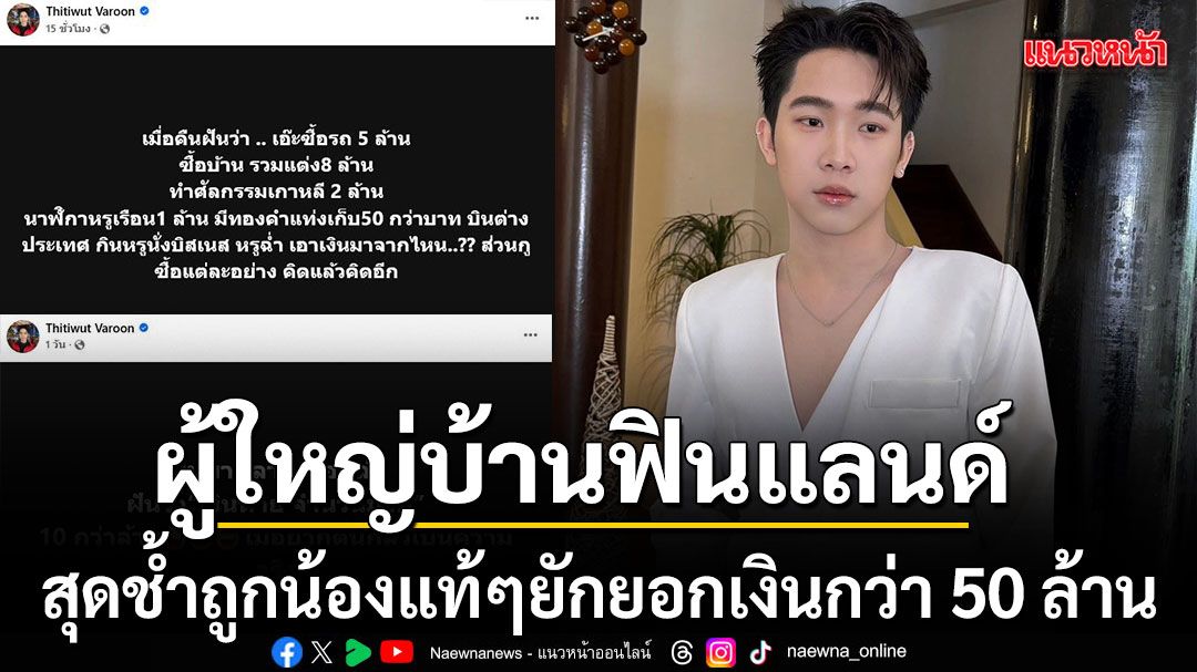 กลายเป็นประเด็นร้อนฉ่าสะเทือนโซเชียลทันที! เมื่อ "บิ๊ก ธิติวุฒิ" หรือที่แฟนคลับรู้จักกันในนาม "ผู้ใหญ่บ้านฟินแลนด์" ออกมาเปิดเผยเรื่องราวสุดช็อกที่ทำเอาเจ้าตัวถึงกับจุกอก เมื่อความจริงปรากฏว่าเงินที่หามาด้วยน้ำพักน้ำแรงหายไปกว่า 50 ล้านบาท โดยฝีมือคนใกล้ชิดที่สุดอย่าง "น้องแท้ๆ"