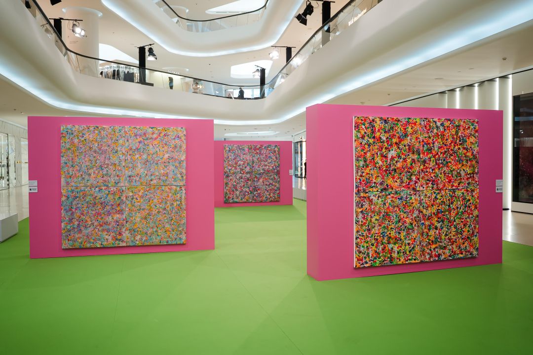 ภายในงานพบกับ ผลงานจิตรกรรมขนาดใหญ่จำนวน 10 ชุด ถ่ายทอดผ่านเทคนิค การหยดสีอะคริลิคบนผ้าใบ สร้างมิติทางสายตาที่ทั้งชวนสับสนและสงบนิ่งในเวลาเดียวกัน สะท้อนสภาวะก้ำกึ่งระหว่างโลกแห่งความตื่นและความฝัน รวมถึงความรู้สึกภายในที่คลุมเครือแต่ทรงพลัง ซึ่งถือเป็นผลงานชุดที่ “สื่อความเป็นตัวตนมากที่สุด” ของศิลปินในช่วงเวลานี้
