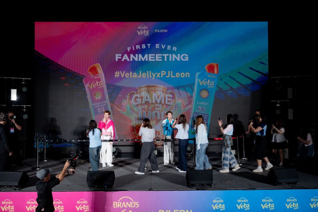 แบรนด์ วีต้า เจลลี่ (BRAND'S VETA JELLY) โดย บริษัท ซันโทรี่ เบเวอเรจ แอนด์ ฟู้ด (ประเทศไทย) จำกัด เสิร์ฟโมเมนต์สุดฟินแบบไม่มีกั๊ก ในแฟนมีตครั้งแรกของสองหนุ่มสุดฮอต “พีเจ–เลออน” กับงาน “BRAND’S VETA JELLY x PJLEON First Ever Fan Meeting ‘GAME ไม่กั๊ก 5in1’” ที่เปิดประสบการณ์สุดเอ็กซ์คลูซีฟให้แฟน ๆ ได้ใกล้ชิดศิลปินคนโปรดแบบเต็มอิ่ม ฟินกับกิจกรรมและโมเมนต์พิเศษภายใต้คอนเซปต์ Sports & Fun ที่ทุกคนได้ร่วมสนุกและมีส่วนร่วมกับพีเจและเลออนอย่างใกล้ชิด ท่ามกลางบรรยากาศสุดคึกคัก ณ Lido Connect Hall สยามสแควร์ ซึ่งถูกเนรมิตให้กลายเป็นพื้นที่รวมเสียงเชียร์ ความสนุก และรอยยิ้มของแฟนคลับ และ 156 Lucky Fans