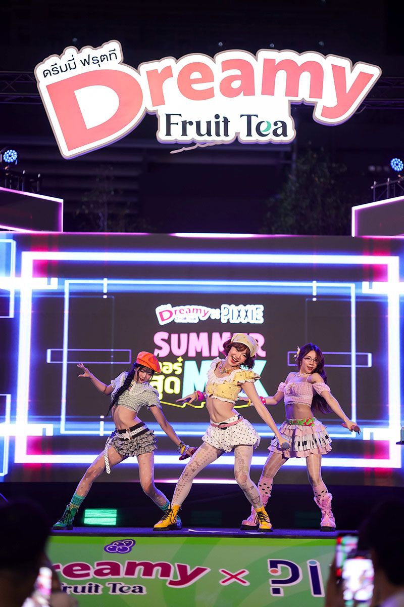 โดยภายในงานได้จัดแบ่งพื้นที่ต่างๆ เพื่อให้ทุกคนได้สัมผัสกับประสบการณ์ความสดชื่นกันแบบไร้ขีดจำกัด ซึ่งไฮไลท์ของงานอยู่ที่มินิคอนเสิร์ตจาก PiXXiE เกิร์ลกรุ๊ปสุดฮอต ในฐานะพรีเซนเตอร์ของ Dreamy Fruit Tea ที่มามอบความสดใสและความสนุกด้วยกิจกรรมกับเหล่าแฟนคลับแบบใกล้ชิด พร้อมลุ้นรับของรางวัลสุดพิเศษ และยังจัดเต็มความบันเทิงจากมินิคอนเสิร์ตของกลุ่มนักดนตรีรุ่นใหม่ วง Sisweed และวง Sweezdream ที่มาร่วมเติมเต็มบรรยากาศความสนุกกันแบบไม่มีพัก พร้อมโซนกิจกรรมสุดครีเอทีฟ ทั้ง Dreamy Fruit Tea Hub, Dreamy Photo Mix, Summer Mix Machine และ Dreamy Fruit Tea Bar ที่เปิดโอกาสให้ผู้ร่วมงานได้มิกซ์ความสดชื่นในแบบของตัวเอง ซึ่ง Dreamy Fruit Tea ถือเป็นชาผลไม้ปรุงสำเร็จที่ตอบโจทย์ไลฟ์สไตล์คนยุคใหม่ ด้วยจุดเด่นเรื่องความสะดวก ดื่มง่ายเพียงชงในน้ำเย็นและเพิ่มความสดชื่นด้วยการเติมน้ำแข็ง พร้อมได้รับคุณค่าจากวิตามินซี และการใช้หญ้าหวานช่วยให้ความหวาน ตอบโจทย์เทรนด์ผู้บริโภคยุคใหม่ที่รักสุขภาพ ซึ่งมีให้เลือกถึง 5 รสชาติ ได้แก่ แอปเปิ้ล, ส้มยูซุ, พีช, น้ำผึ้งมะนาว และมิกซ์เบอร์รี