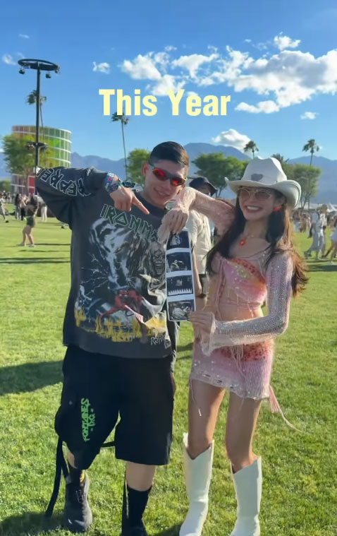 ก่อนหน้านี้ทั้งคู่ได้โพสต์คลิปผ่านอินสตาแกรมส่วนตัว พร้อมแคปชั่น “ปีนี้มีคนอยากมาด้วย #Coachella2026” โดยในคลิปเผยให้เห็นภาพอัลตร้าซาวด์ ทำเอาแฟนๆ ตื่นเต้นและร่วมแสดงความยินดีอย่างต่อเนื่อง