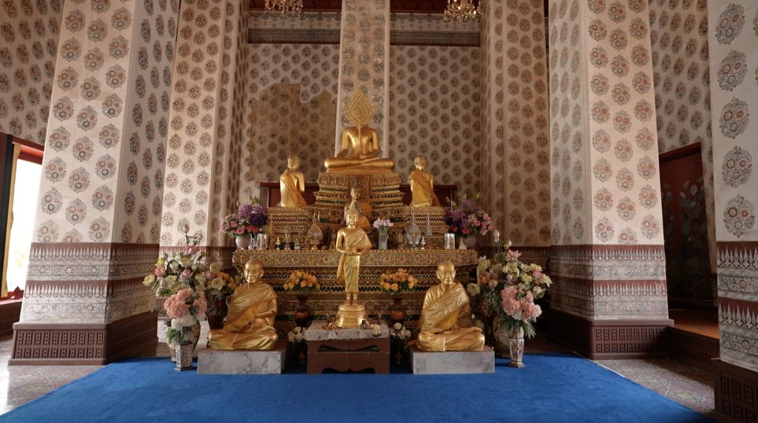 ทริปนี้เริ่มต้นด้วยการพาเที่ยวชมวัดเก่าแก่ที่มีความสำคัญทางประวัติศาสตร์ โดยเป็นวัดที่ในหลวงรัชกาลที่ 3ขึ้นเป็นวัดสุดท้ายในรัชกาล ก่อนที่พระองค์จะเสด็จสวรรคต และยังเป็นแหล่งน้ำศักดิ์สิทธิ์เพียงแห่งเดียวของจังหวัดนนทบุรีอีกด้วยเมื่อมาถึง ทั้ง “หนุ่ม-แท่ง” ไม่พลาดพาแฟนรายการเข้าสักการะ “พระพุทธมหาโลกาภินันทปฏิมา” พระพุทธรูปศักดิ์สิทธิ์ที่ผู้คนนิยมมาขอพรเรื่องค้าขายและความเจริญรุ่งเรืองในชีวิตธุรกิจ จากนั้นพาเดินชมความงดงามของพระอุโบสถ และ “วิหารพระศิลาขาว” พระวิหารหลวงสถาปัตยกรรมไทยผสมจีนอันโดดเด่น ก่อนจะไปกราบพระประธาน
