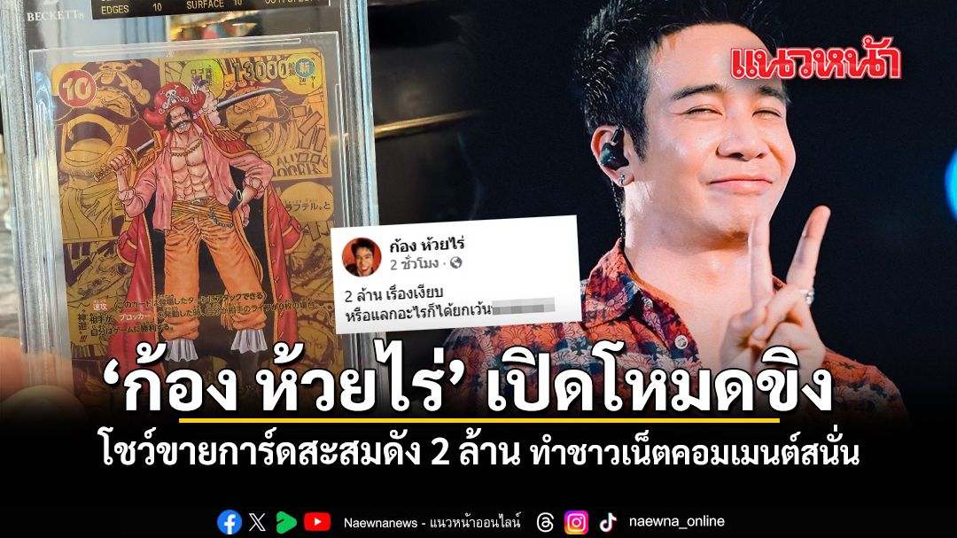 วันนี้ 29 เมษายน 2569 ก้อง ห้วยไร่ นักร้องหนุ่มอารมณ์ดี โพสต์ภาพการ์ดสุดหายากที่ทำเอาเหล่านักสะสมถึงกับตาลุกวาว ทำเอากลายเป็นไวรัลในโลกโซเชียลขึ้นมาทันที พร้อมแคปชั่นสไตล์ก้องว่า "2 ล้าน เรื่องเงียบ หรือแลกอะไรก็ได้ยกเว้น....หมา"