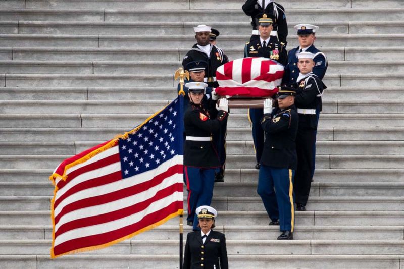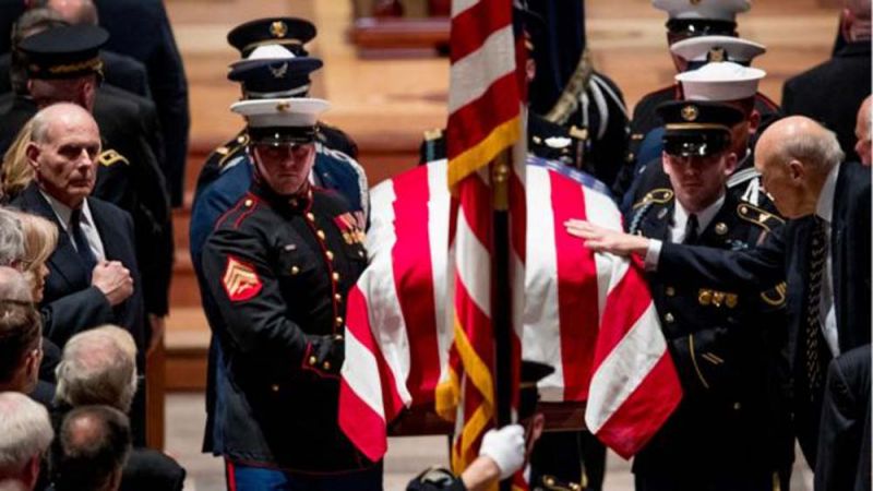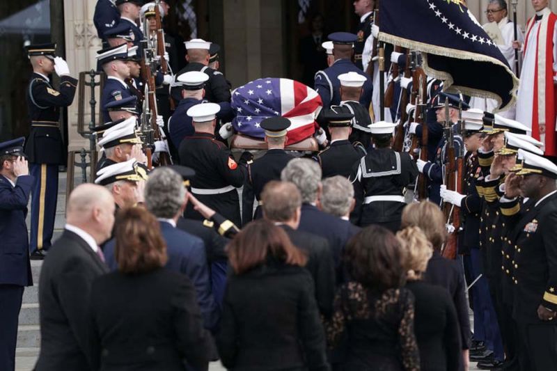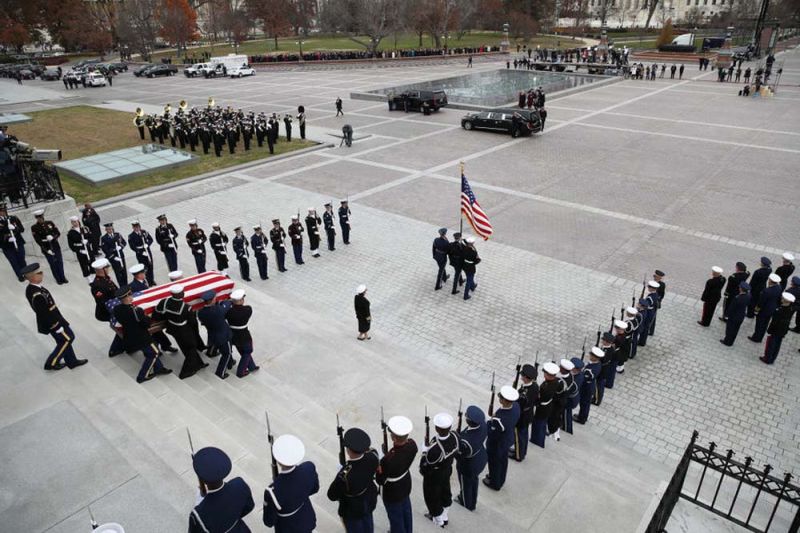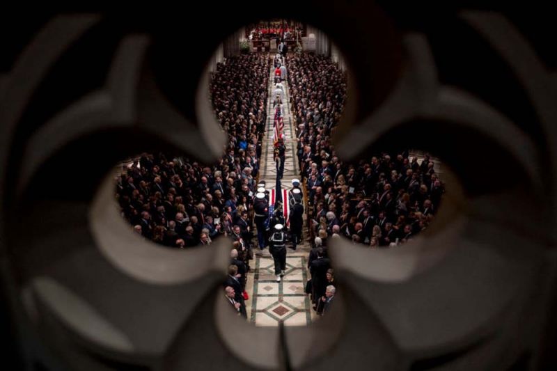 6 ธ.ค.61 สำนักข่าวต่างประเทศรายงาน รัฐพิธีศพ นายจอร์จ เอช.ดับเบิลยู. บุช ประธานาธิบดี คนที่ 41 ของสหรัฐอเมริกา วัย 94 ปี ได้ถูกจัดขึ้นอย่างสมเกียรติ ที่มหาวิหารแห่งชาติ หรือ National Cathedral กรุงวอชิงตัน เมื่อวันที่ 5 ธ.ค.ตามเวลาท้องถิ่น โดยระหว่างพิธีกองทหารปืนใหญ่เกียรติยศยิงสลุต 21 นัด และเครื่องบินขับไล่ของกองทัพเรือบินแสดงเหนือมหาวิหารด้วย