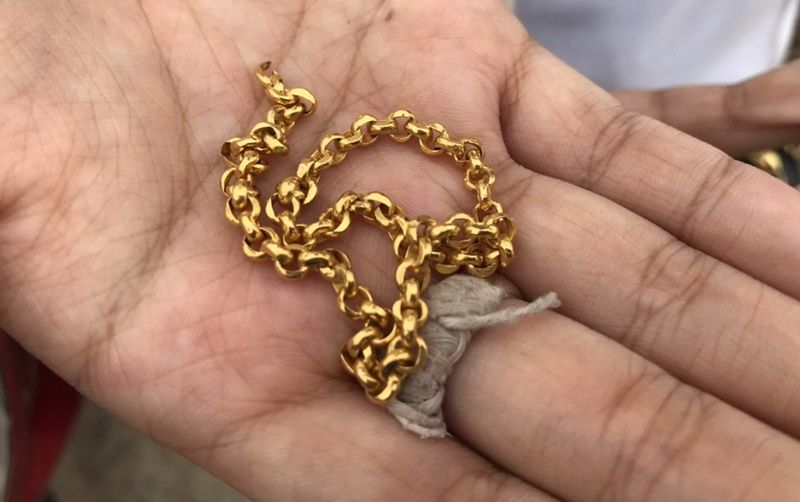 พอสัญญาณไฟเขียว คนร้ายก็กระชากสร้อยคอที่ตนสวมใส่อยู่ เป็นสร้อยทองคำหนัก 2 สลึงขาดไปครึ่งเส้น โดยตนเองจับไว้ได้ครึ่งเส้น คนร้ายได้ไปครึ่งเส้น จากนั้นเร่งเครื่องหนีไป ตนก็ตะโกนขอความช่วยเหลือ และมีพลเมืองดีขับขี่ตามไปแล้วรถเกิดเสียหลักพลิกคว่ำได้รับบาดเจ็บสาหัสมีบาดแผลฉีกขาดทั่วบริเวณร่างกาย และมีบาดแผลลึก บริเวณศีรษะยังไม่สามารถให้ปากคำกับเจ้าหน้าที่ตำรวจได้