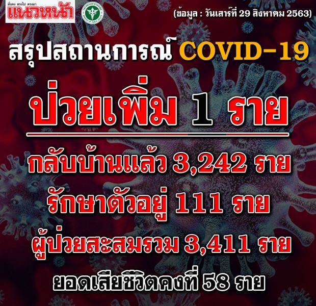 ติดตามรายงานสถานการณ์การแพร่ระบาดล่าสุดของ ไวรัสโควิด-19 จากประเทศต่างๆ ทั่วโลก ประจำวันที่ 29 สิงหาคม 2563 มีรายละเอียดดังต่อไปนี้...