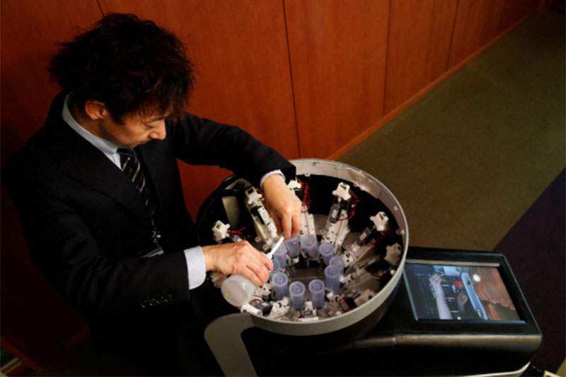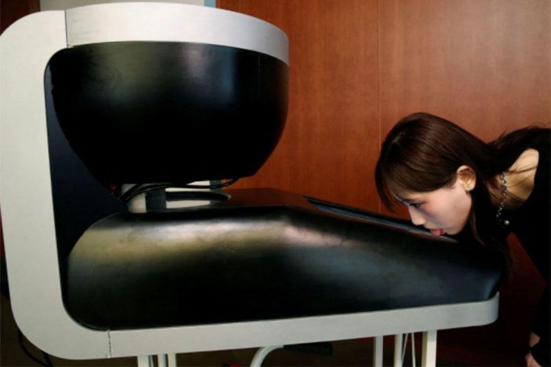 ขณะที่นักศึกษาคนหนึ่งสาธิตการใช้งานด้วยการสั่งช็อกโกแลตผ่านหน้าจอ จากนั้นระบบจะทวนคำสั่งแล้วก็ฉีดรสชาติที่ต้องการลงบนแผ่นพลาสติก เมื่อลองใช้ลิ้นสัมผัสที่หน้าจอ นักศึกษารายนี้บอกว่ารสชาติเหมือนซอสที่ทำจากช็อกโกแลต และมันเหมือนกับช็อกโกแลตนม
