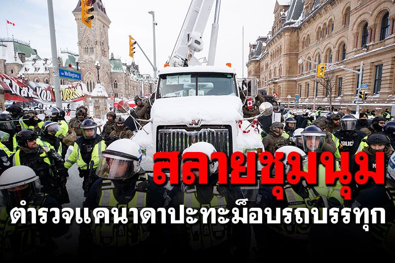 ตำรวจแคนาดาปะทะกับกลุ่มผู้ประท้วงในกรุงออตตาวา พร้อมทั้งเริ่มลากรถบรรทุกออกจากใจกลางกรุงออตตาวา ซึ่งเป็นความพยายามที่จะยุติม็อบรถบรรทุก ที่ก่อหวอดประท้วงต่อต้านการบังคับฉีดวัคซีนป้องกันโควิด-19 โดยปฏิบัติการเริ่มต้นขึ้นในช่วงเช้าวันศุกร์ เจ้าหน้าที่ตำรวจจับกุมผู้ประท้วงไป 70 คน และกล่าวหาผู้ประท้วงว่าใช้เด็กเป็นโล่ระหว่างแถวของเจ้าหน้าที่และพื้นที่ประท้วง