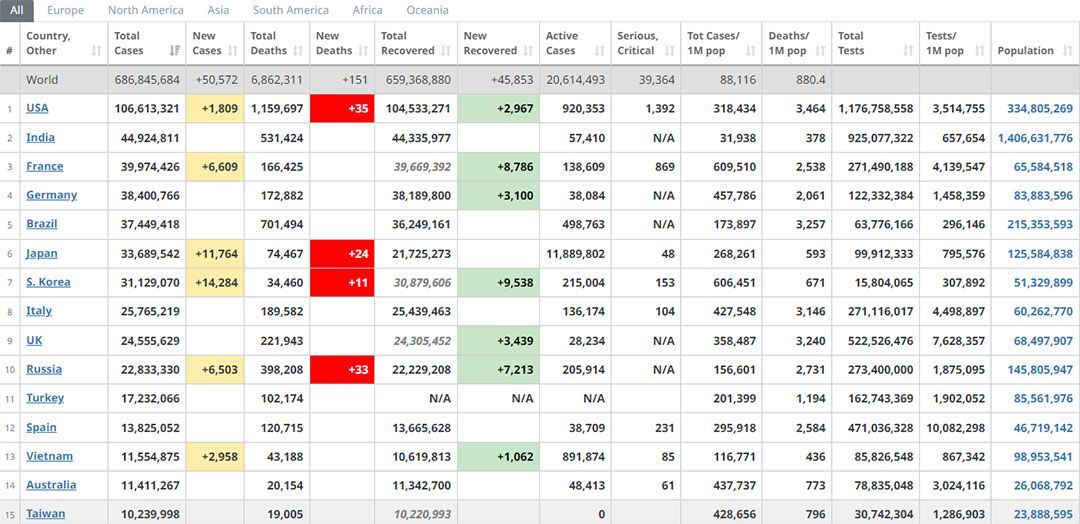 ขอบคุณข้อมูลจาก >> www.worldometers.info