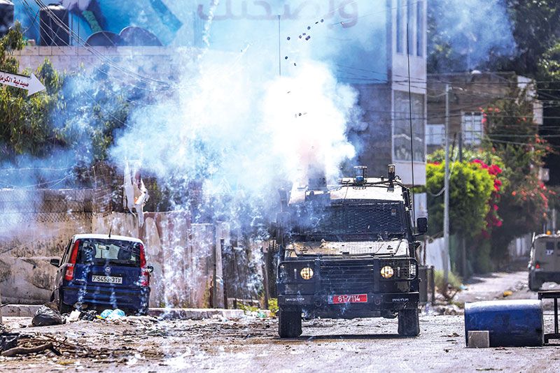 ปราบปราม : ทหารกองทัพอิสราเอลยิงแก๊สน้ำตาเข้าใส่พื้นที่เป้าหมายในเมืองเจนิน เขตเวสต์แบงก์ในอิสราเอลเมื่อวันพุธ ระหว่างปฏิบัติการทางทหารครั้งใหญ่ที่สุดในปาเลสไตน์ในรอบหลายปี เพื่อเป้าปิดล้อมค่ายผู้ลี้ภัยในเมืองเจนินเป็นหลัก ส่งผลให้มีผู้เสียชีวิต 12 ราย ล่าสุดได้เริ่มถอนทหารออกจากเมืองเจนินแล้ว