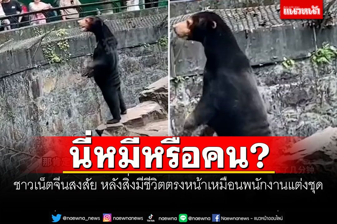 เมื่อวันที่ 1 สิงหาคม 2566 เว็บไซต์ นสพ.Daily Mail ของอังกฤษ เสนอข่าว Bear-ly believable! Zoo is forced to deny its bears are 'humans in disguise' wearing elaborate costumes after video of the animals standing on two legs went viral in China ระบุว่า ที่ประเทศจีน มีการแชร์คลิปวีดีโอที่อ้างว่ามาจากสวนสัตว์แห่งหนึ่งในเมืองหางโจว มณฑลเจ้อเจียง ซึ่งชาวเน็ตแดนมังกรตั้งข้อสังเกตว่า สิ่งที่เห็นในคลิปเป็น “หมีหมา (Sun Bear)” จริงๆ หรือเป็นเจ้าหน้าที่สวนสัตว์แต่งกายปลอมเป็นหมีมาโชว์ตัวกันแน่