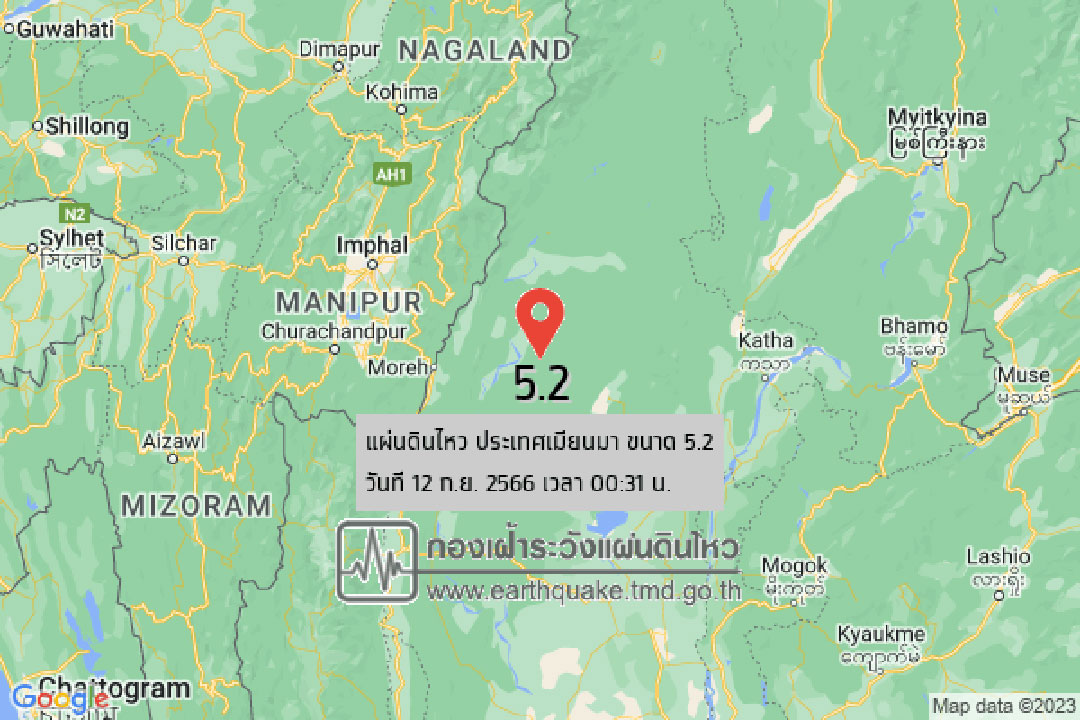12 กันยายน 2566 เกิดเหตุระทึกเมื่อช่วงกลางดึกที่ผ่านมา 00.31น.(ตามเวลาในไทย)เกิดเหตุแผ่นดินไหวที่ประเทศเมียนมา ขนาด 5.2 ลึก 10 กม.ทางทิศตะวันตกเฉียงเหนือของ อ.ปางมะผ้า จ.แม่ฮ่องสอน ประมาณ 629 กม.