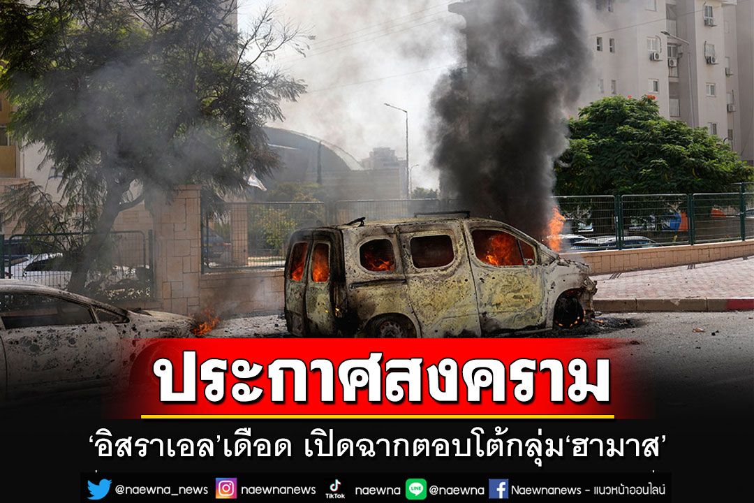 ด้านกองทัพอิสราเอล ได้ออกมาประกาศภาวะ ‘สงคราม’ พร้อมอนุมัติเรียกทหารกองหนุนเข้าประจำการเตรียมพร้อม ก่อนอิสราเอลจะเปิดฉากโจมตีเป้าหมายหลายแห่งของกลุ่มฮามาสในเขตฉนวนกาซา เพื่อตอบโต้เหตุโจมตีด้วยจรวดหลายพันลูกของกลุ่มฮามาสที่เปิดฉากโจมตีพื้นที่ทางใต้ของอิสราเอลแบบไม่ทันตั้งตัว และยังส่งมือปืนแทรกซึมเข้าไปในอิสราเอล โดยกลุ่มฮามาสประกาศโจมตีเพื่อหยุดยั้งอาชญากรรมทั้งหมดที่อิสราเอลก่อขึ้นในดินแดนปาเลสไตน์