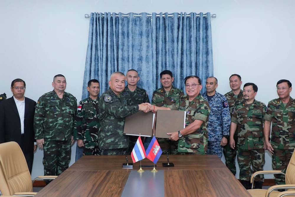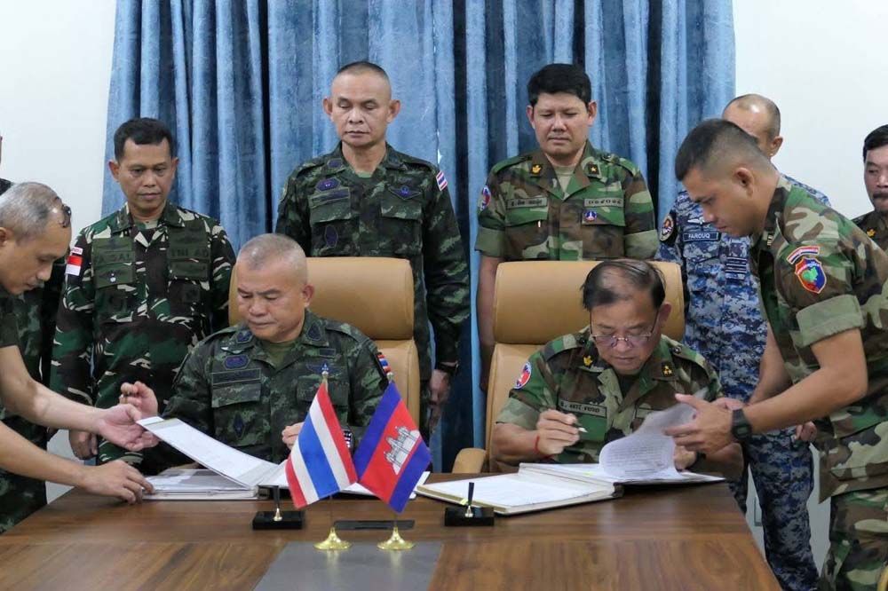 มีการทําข้อตกลงในการประชุม RBC ชนบทกัมพูชา-ไทย บ่ายวันที่ 31 ตุลาคม 2025 ณ ประตูชายแดนออสแมค จ.อุดดาร์ มีนเชย นําการประชุมโดย พลเอก ปอฟ เฮง ผู้บัญชาการกองทัพหมู่บ้านที่ 4 แห่งราชอาณาจักรกัมพูชา และ พลเอก วิรกยุทธ รักษ์สิงห์ ผู้บัญชาการกองทัพบกที่ 2 แห่งราชอาณาจักร ประเทศไทย โดยการมีส่วนร่วมของกลุ่มผู้สังเกตการณ์อาเซียน (AOT) ในกัมพูชา และ ประเทศไทย เพื่อติดตาม ตรวจสอบ และตรวจสอบให้แน่ใจว่าการหยุดยิงอย่างเต็มที่ ถูกต้องและมีประสิทธิภาพ