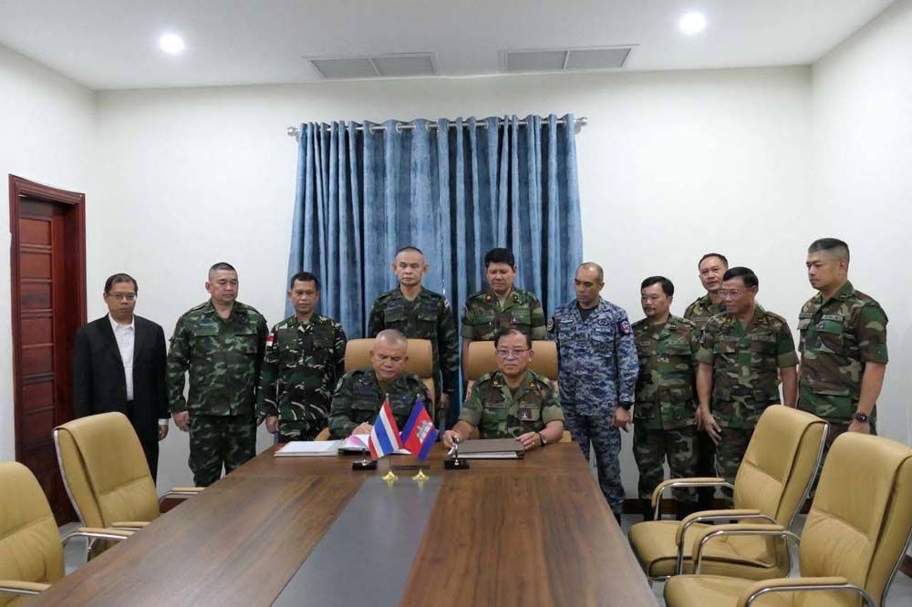 ในภาพ จะเป็นผู้บัญชาการ กองทัพบกกัมพูชา ภาค 4 และ พล.ท.วีรยุทธ รักศิลป์ แม่ทัพภาคที่ 2 ของไทย ได้ตกลงแผนการเฉพาะเจาะจงในการ อํานวยความสะดวกทุนการศึกษาและอาวุธหนักทั้งสองฝ่ายตามขั้นตอนและตามขั้นตอนภายใต้การสังเกตการณ์และการตรวจสอบของกลุ่มผู้สังเกตการณ์อาเซียน (AOT)