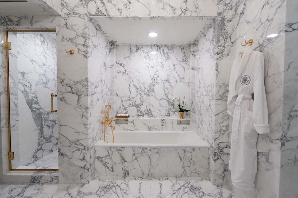 ประธานาธิบดีโดนัลด์ ทรัมป์ โพสต์ข้อความระบุว่า ว่าห้องน้ำนี้เคยได้รับการปรับปรุงครั้งล่าสุดในช่วงทศวรรษ 1940 โดยตกแต่งในสไตล์อาร์ตเดโค ซึ่งเขามองว่าไม่เหมาะสมอย่างยิ่งกับยุคของอับราฮัม ลินคอล์น เขาจึงสั่งให้ปรับปรุงใหม่ทั้งหมด โดยใช้หินอ่อนสตาตูอาริโอ้ ซึ่งเหมาะสมกับยุคลินคอล์นมากกว่า พร้อมแนบภาพถ่ายหลายภาพประกอบโพสต์