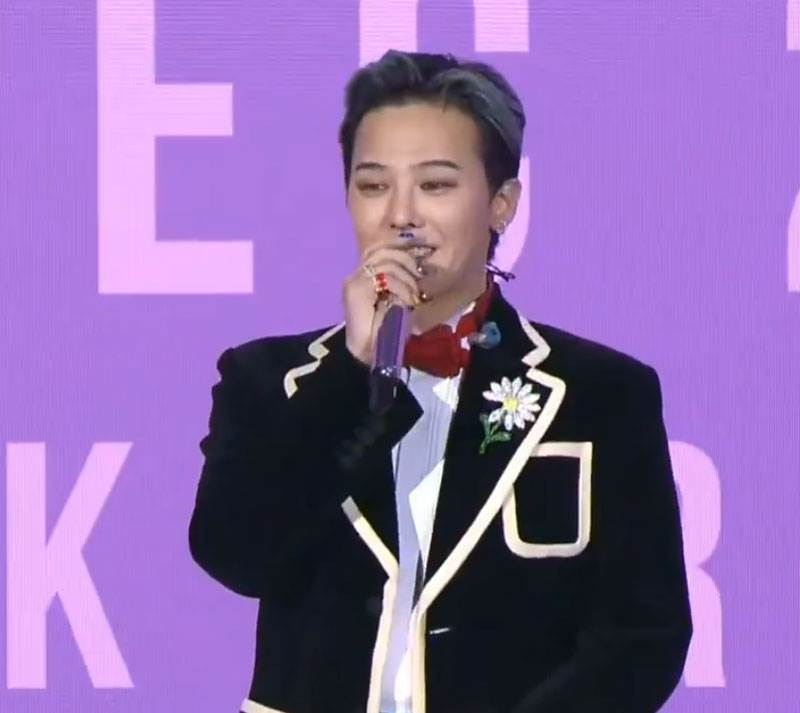 โดย จี-ดรากอน (G-Dragon) ปรากฏตัวด้วยหมวกที่มีแรงบันดาลใจจากหมวกเกาหลีโบราณ “갓 (Gat)” และแนะนำตัวว่า "ผมคือ จี-ดรากอน ศิลปินและทูตวัฒนธรรมของ APEC 2025 เกาหลี" จากนั้นก็โชว์เพลงฮิตของตนเองอย่างจัดเต็ม