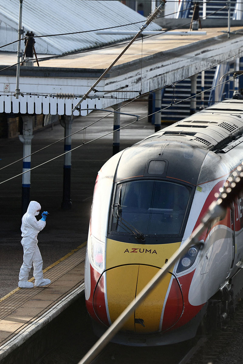 ตำรวจขนส่งอังกฤษซึ่งรับผิดชอบด้านความปลอดภัยบนรถไฟ ระบุว่า มีผู้ต้องสงสัยถูกจับกุม 2 ราย โดยตำรวจปราบปรามการก่อการร้ายกำลังช่วยสนับสนุนการสืบสวนสอบสวนนี้ โดยถ้อยคำแถลงการณ์ของเจ้าหน้าที่ตำรวจ ระบุว่า เหตุการณ์นี้ถูกประกาศว่าเป็นเหตุการณ์ร้ายแรง และตำรวจปราบปรามการก่อการร้ายกำลังสนับสนุนการสืบสวนสอบสวนของเรา ในขณะที่เรากำลังดำเนินการเพื่อรวบรวมข้อเท็จจริงและแรงจูงใจทั้งหมดของเหตุการณ์นี้