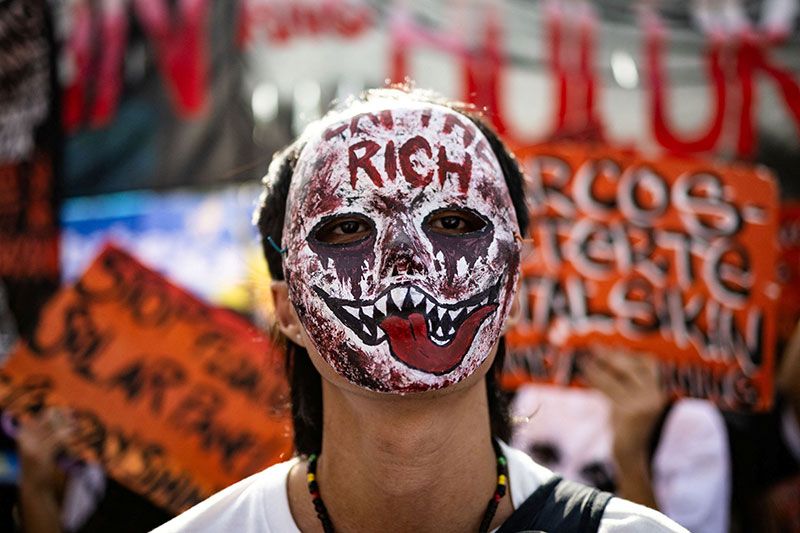 ขบวนการประชาชนต่อต้านการทุจริต (KBKK) ได้ตั้งขบวนที่สวนลูเนตาหรือสวนรีซาล เพื่อมุ่งหน้าไปยังทำเนียบประธานาธิบดี ผู้ชุมนุมบางคนสวมหน้ากากเลียนแบบใบหน้าประธานาธิบดีมาร์กอส จูเนียร์ และรองประธานาธิบดีซารา ดูเตอร์เต ถือป้ายประท้วงที่เปรียบนักการเมืองเป็นจระเข้ ขณะที่หลายคนถือป้ายเรียกร้องให้นายมาร์กอส จูเนียร์ลาออก และป้ายเรียกร้องให้ดำเนินคดีกับนักการเมืองทุจริตทุกคน ผู้จัดการชุมนุมประเมินว่ามีผู้เข้าร่วมมากกว่า 20,000 คน
