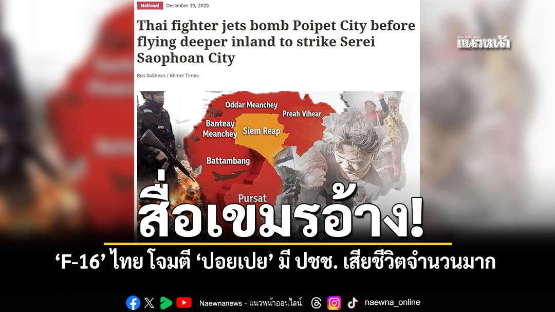 กระทรวงกลาโหมกัมพูชา ระบุว่า เมื่อเวลา 11.06 น. ของเมื่อวานนี้ เครื่องบินรบ F-16 ของไทยได้ทิ้งระเบิด 2 ลูก ใส่ในพื้นที่เขตเทศบาลเมืองปอยเปต ซึ่งเป็นเมืองชายแดนที่สำคัญ เป็นทั้งศูนย์กลางการค้าและการคมนาคม ทำให้ประชาชนละแวกนั้นแตกตื่นหนีออกจากพื้นที่กันอลหม่าน อีกทั้งเครื่องบินรบของไทยได้บินรุกล้ำเข้าไปเมืองเซรีเซาโพอัน เมืองหลวงของจังหวัดบันทายมีชัย ทิ้งระเบิด 4 ลูก ในช่วงเวลา 14.32 น. และ 14.45 น. ส่งผลให้เกิดการอพยพครั้งใหญ่ของชาวบ้าน