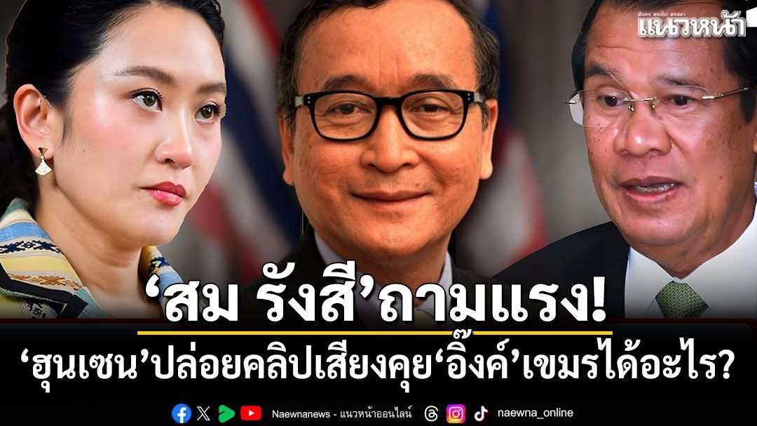 22 ธันวาคม 2568 นาย สม รังสี อดีตผู้นำฝ่ายค้านกัมพูชาและรัฐบาลอิสระ ที่ขณะนี้ลี้ภัยอยู่ต่างประเทศ ได้โพสต์ภาพของ น.ส.แพทองธาร ชินวัตร อดีตนายกรัฐมนตรี และ สมเด็จ ฮุน เซน อดีตนายกรัฐมนตรี พร้อมตั้งคำถามว่า “หลังจากฮุน เซน เผยแพร่การสนทนาส่วนตัวทางโทรศัพท์แล้ว กัมพูชาได้ประโยชน์อะไรบ้าง?”