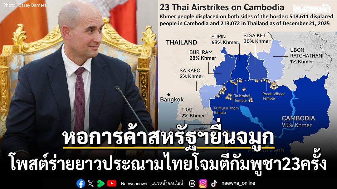 22 ธันวาคม 2568 สำนักข่าวต่างประเทศรายงานว่า เคซีย์ บาร์เน็ตต์ ประธานหอการค้าสหรัฐฯ ในกัมพูชา ได้ออกมาโพสต์ข้อความผ่านทางเฟซบุ๊กส่วนตัว "Casey Barnett" ที่มีผู้ติดตาม 4.4 หมื่นคนบนเฟซบุ๊ก ระบุข้อความว่า
