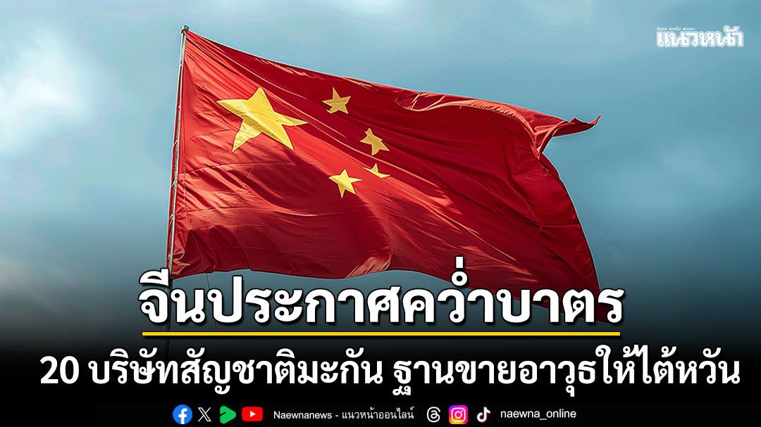 26 ธันวาคม 2568 สำนักข่าวต่างประเทศรายงานว่า รัฐบาลจีน ประกาศใช้มาตรการคว่ำบาตรบริษัทธุรกิจด้านความมั่นคงของสหรัฐจำนวน 20 แห่ง รวมถึงบริษัท Boeing’s St. Louis branch และ Anduril Industries และผู้บริหารของบริษัทเหล่านี้จำนวน 10 ราย เพื่อตอบโต้การเสนอแพคเกจขายอาวุธจำนวนมากให้กับ ไต้หวัน ของ สหรัฐ เมื่อสัปดาห์ที่ผ่านมา
