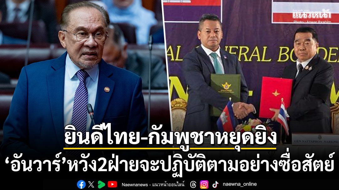 'อันวาร์ อิบราฮิม' กล่าวต่ออีกว่า ผมยินดีกับการหยุดยิงที่กัมพูชาและไทยตกลงกัน ซึ่งมีผลบังคับใช้เวลา 12:00 น. ตามเวลาท้องถิ่น การตัดสินใจยุติการสู้รบและคงกำลังทหารไว้ สะท้อนให้เห็นถึงการยอมรับร่วมกันว่าจำเป็นต้องใช้ความยับยั้งชั่งใจ โดยเฉพาะอย่างยิ่งเพื่อผลประโยชน์ของพลเรือน