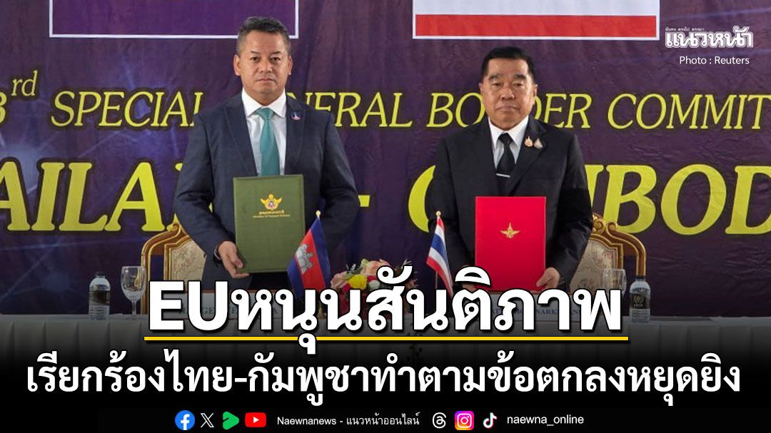 โดยระบุข้อความว่า " สหภาพยุโรปยินดีกับข้อตกลงหยุดยิงที่กัมพูชาและไทยลงนามในวันนี้ และเรียกร้องให้ทั้งสองฝ่ายปฏิบัติตามข้อตกลงด้วยความสุจริตใจ ขอขอบคุณสมาคมประชาชาติแห่งเอเชียตะวันออกเฉียงใต้ (อาเซียน) ที่มีบทบาทเชิงบวกต่อผลลัพธ์ในครั้งนี้ สหภาพยุโรปพร้อมให้การสนับสนุนทุกอย่างที่จำเป็น"