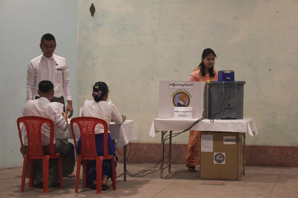 การเลือกตั้งรอบแรกจากทั้งหมดสามรอบเริ่มขึ้นเวลา 6:00 น. ตามเวลาท้องถิ่น ซึ่งรวมถึงเขตเลือกตั้งในนครย่างกุ้ง มัณฑะเลย์ และกรุงเนปิดอว์ เมืองหลวงของประเทศ ที่ซึ่งพลเอกอาวุโสมิน อ่อง หล่าย ผู้นำรัฐบาลทหารเมียนมาได้ไปใช้สิทธิ์เลือกตั้ง เขากล่าวกับผู้สื่อข่าวว่า "เรารับประกันว่าจะเป็นการเลือกตั้งที่เสรีและยุติธรรม" และกล่าวต่อว่า "กองทัพเป็นผู้จัดการเลือกตั้ง เราไม่สามารถปล่อยให้ชื่อเสียงของเราเสื่อมเสียได้"