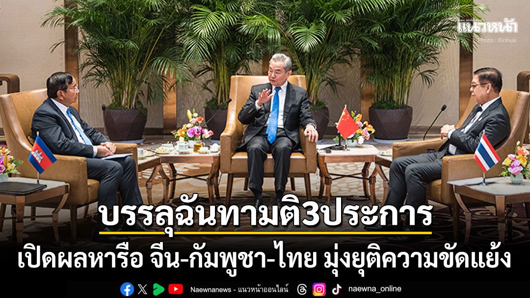 นายหวัง อี้ กล่าวว่า กระทรวงการต่างประเทศและกองทัพของกัมพูชาและไทยได้แลกเปลี่ยนมุมมองเชิงลึกเกี่ยวกับเรื่องนี้ ทั้งสองฝ่ายแสดงความมุ่งมั่นลดทอนความรุนแรงของสถานการณ์ความขัดแย้ง และยินดีจะปรับปรุงความสัมพันธ์ทวิภาคีบนพื้นฐานของการหยุดยิง