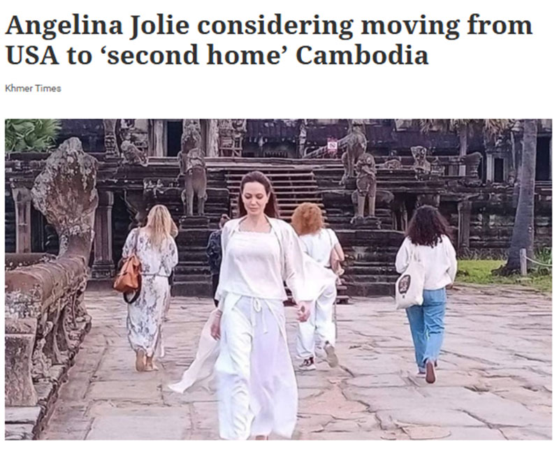 7 มกราคม 2568 สำนักข่าวแขมร์ ไทม์ส สื่อหลักของประเทศกัมพูชา รายงานว่า สำนักข่าวบันเทิงของสหรัฐฯ อย่าง People ได้ออกมารายงานว่า แอนเจลินา โจลี (Angelina Jolie) นักแสดงฮอลลีวูดชื่อดังระดับโลก วัย 51 ปี ได้ประกาศขายบ้านของเธอในลอสแอนเจลิส สหรัฐฯ และกำลังเตรียมตัวเริ่มต้นชีวิตใหม่ ซึ่งอาจรวมถึงการย้ายไปพำนักที่กัมพูชา ซึ่งเธอถือสัญชาติอยู่ โดยอ้างแหล่งข่าวว่า "เธอกำลังเตรียมเริ่มต้นบทใหม่ทั้งหมดเมื่อปีใหม่เริ่มต้นขึ้น"