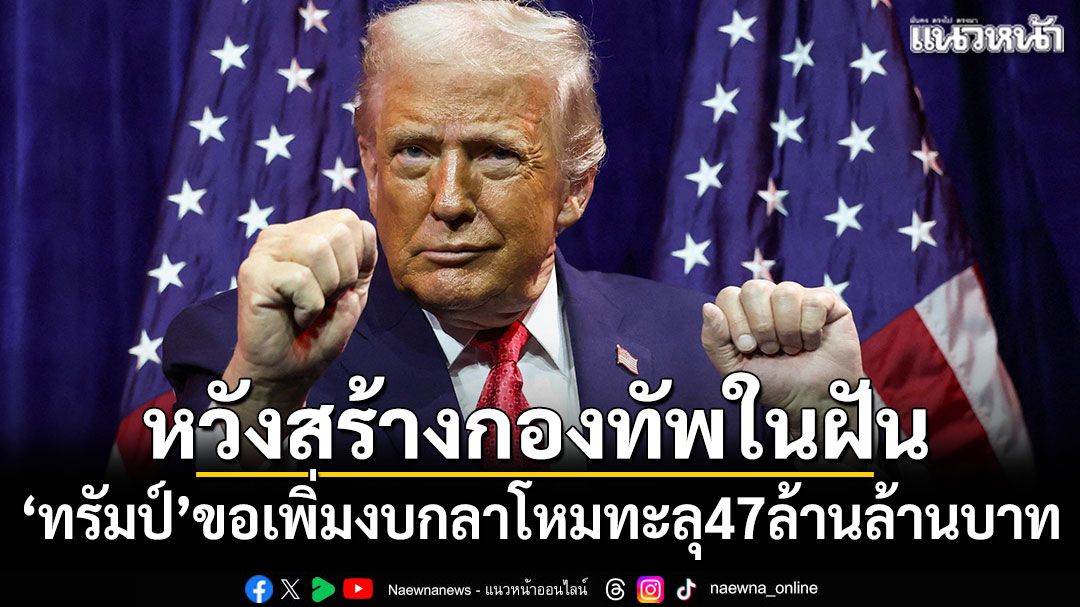 8 มกราคม 2569 สำนักข่าวต่างประเทศรายงานว่า ประธานาธิบดีโดนัลด์ ทรัมป์ ของสหรัฐอเมริกา ออกมาเรียกร้องให้เพิ่มงบประมาณด้านการป้องกันประเทศสำหรับปีงบประมาณ 2027 เป็น 1.5 ล้านล้านดอลลาร์สหรัฐ หรือกว่า 47 ล้านล้านบาท เพิ่มขึ้นมากกว่า 50% จากงบประมาณปัจจุบันที่อยู่ที่ 901,000 ล้านดอลลาร์ ซึ่งเพิ่งได้รับการอนุมัติเมื่อเดือนธันวาคมที่ผ่านมา โดยให้เหตุผลว่าสหรัฐฯ กำลังเผชิญสถานการณ์ระหว่างประเทศที่วุ่นวายและอันตรายอย่างยิ่ง