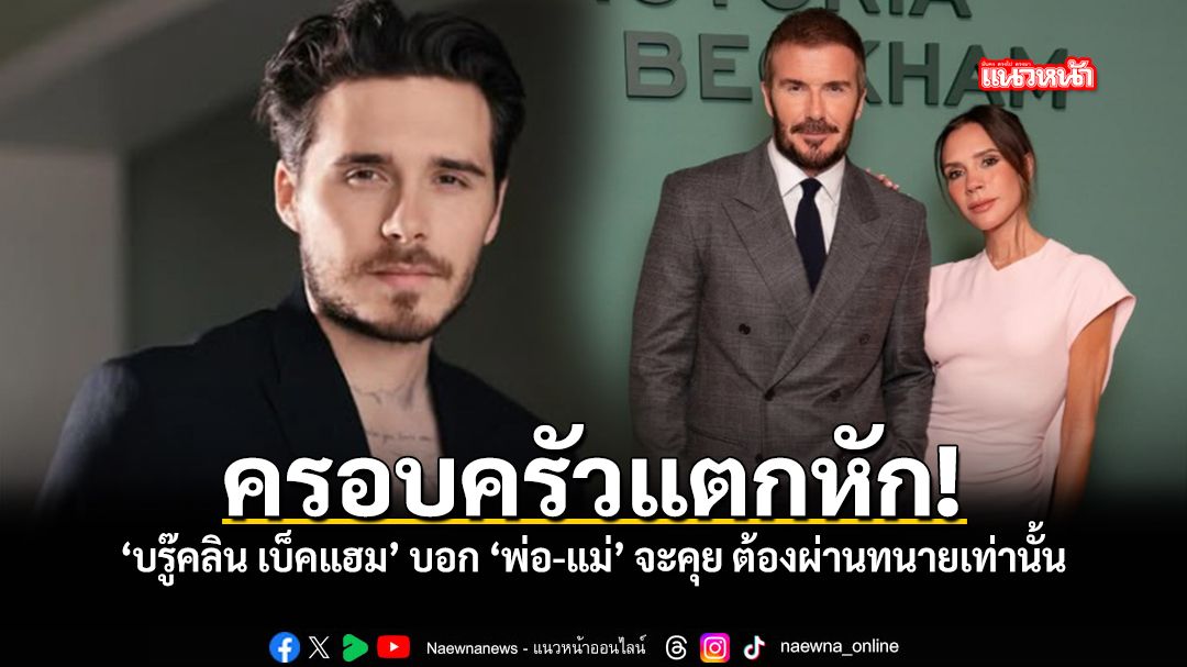 วันนี้ 9 มกราคม พ.ศ. 2569 สื่อต่างประเทศรายงานถึงความสัมพันธ์ถึงความสัมพันธ์ของครอบครัว "ตระกูลเบ็คแฮม" ที่ดูเหมือนจะร้าวฉานอย่างหนักจนแตกหักอย่างแท้จริง หลังมีรายงานว่า บรู๊คลิน เบ็คแฮม วัย 27 ปี ลูกชายคนโต ได้ยื่นคำขาด ตัดการติดต่อกับพ่อแม่โดยตรง โดยล่าสุด บรู๊คลิน ได้ส่งหนังสือทางกฎหมายถึง เดวิด เบ็คแฮม และ วิคตอเรีย เบ็คแฮม ระบุชัดว่า หากต้องการพูดคุยหรือสื่อสารใด ๆ ต้องผ่านทนายความเท่านั้น และงดเว้นการกล่าวถึงเขาในโซเชียลมีเดีย