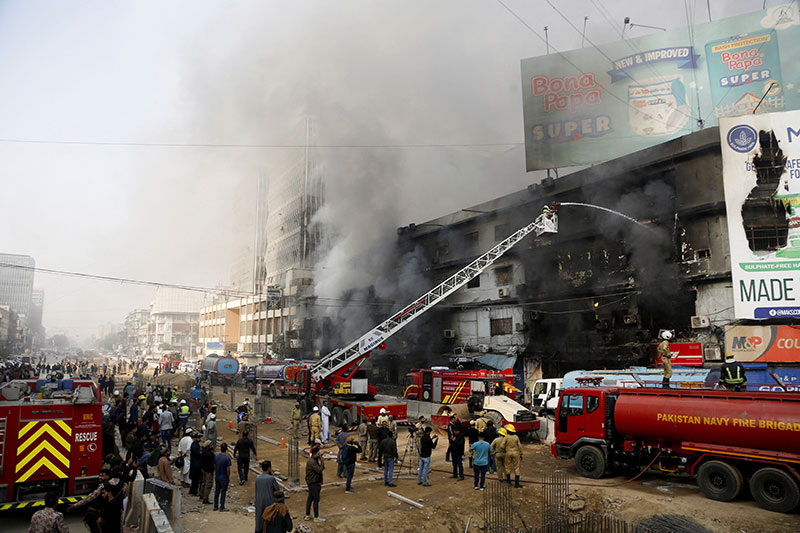 ด้านประธานาธิบดีอาซิฟ อาลี ซาร์ดารี แห่งปากีสถาน แสดงความเสียใจต่อครอบครัวผู้เสียชีวิตและผู้ได้รับผลกระทบ พร้อมสั่งการให้รัฐบาลท้องถิ่นของจังหวัดสินธ์เร่งตรวจสอบมาตรฐานความปลอดภัยของอาคารพาณิชย์และที่พักอาศัยทั่วทั้งเมือง เพื่อป้องกันไม่ให้เกิดเหตุลักษณะนี้ซ้ำอีกในอนาคต