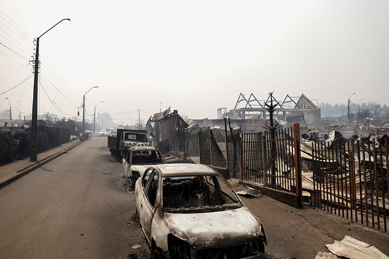 ไฟป่าเกิดขึ้นต่อเนื่องเป็นวันที่สองในแคว้นนูเบลและไบโอบีโอ ซึ่งอยู่ห่างจากกรุงซานติอาโกราว 500 กิโลเมตร โดยมีลมแรงและสภาพอากาศร้อนจัดเป็นปัจจัยเร่งให้ไฟลุกลามอย่างรวดเร็ว บ้านเรือนและยานพาหนะจำนวนมากถูกไฟไหม้เสียหายอย่างหนัก