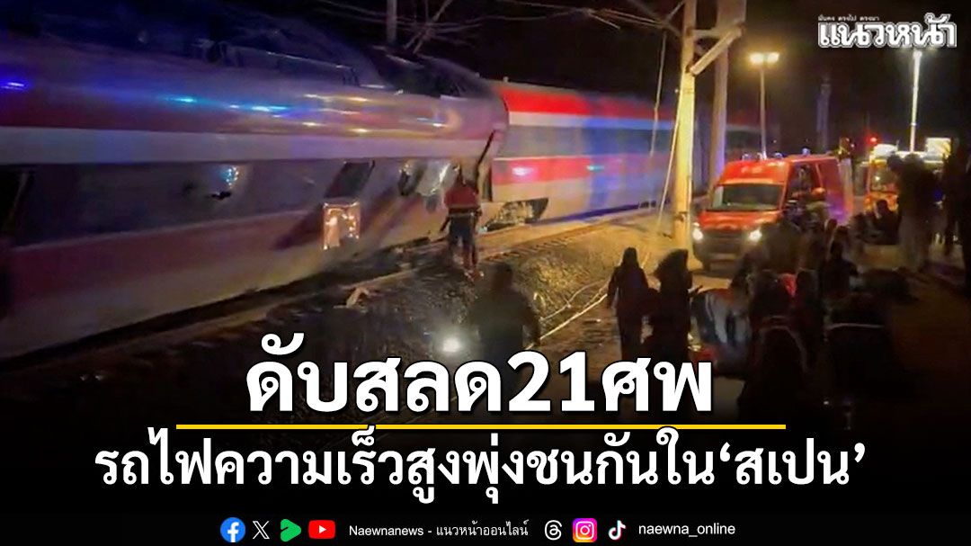 19 มกราคม 2569 สำนักข่าวต่างประเทศรายงานว่า เกิดเหตุรถไฟความเร็วสูง 2 ขบวนตกรางและพุ่งชนกันใกล้เมืองกอร์โดบา ทางตอนใต้ของสเปน ส่งผลให้มีผู้เสียชีวิตอย่างน้อย 21 ราย และบาดเจ็บสาหัส 25 ราย เหตุเกิดเมื่อเวลา 19.45 น. ของวันอาทิตย์ที่ 18 มกราคม ตามเวลาท้องถิ่น หรือราว 01.45 น. ตามเวลาไทย